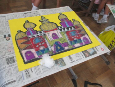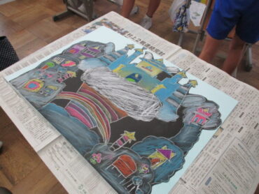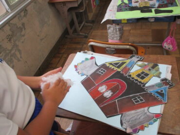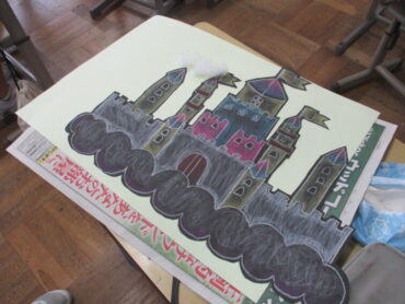 2025.9.25 4年生 4年生 作品づくり頑張っています 4年生、学習発表会の作品づくりの様子です。 子供たちは、夢のお城をテーマに、こんなお城があったらいいなという思いを込めて描いていました。 お城や背景に飾り付けをして完成のようです。楽しみながら取り組んでいました。