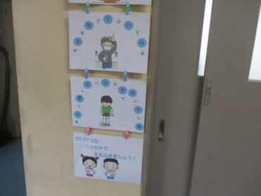 校舎の安全面からも、廊下で濡れた手の水しぶきを飛ばすのは、大変危険です。