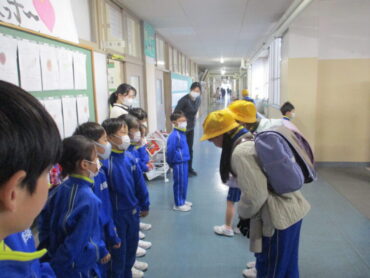 2025.11.19 2年生 全校生 あいさつ運動体験 今週は、運営委員会のあいさつ運動の体験週間です。 運営委員の横で、元気な声で挨拶をしていました。 外はとても冷え込んでいましたが、校舎内には明るい声が響いていました。 急な冷え込み等で体調を崩す子供が増えてきました。 感染症予防のために、うがいと手洗い、マスクの着用を励行しています。 ご家庭でも体調管理をどうぞよろしくお願いいたします。