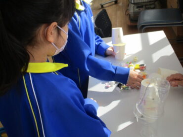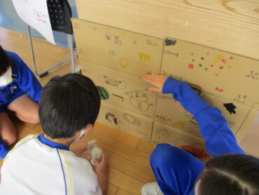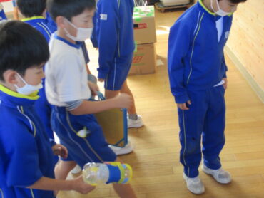 2025.12.12 NEW 1年生 2年生 生活科 あそびランド 2年生と1年生が、生活科の学習「あそびランド」を楽しみました。 1年生は、2年生がつくったクレーンゲームコーナーやロケットコーナー等、様々な遊びを楽しみながら体験していました。遊び方を丁寧に教えてもらい、折り紙のプレゼントももらえて、とても嬉しそうでした。 手作りおもちゃは、どんどん改良を重ねられるおもしろさがありますね。