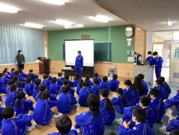 2026.1.19 4年生 5年生 6年生 委員会紹介 1月19日(月)に委員会紹介を行いました。 新年度委員会の中心となる4・5年児童に、各委員会の委員長と副委員長が今年度の活動内容を紹介しました。プレゼンテーションアプリを使い、写真などで活動の様子を分かりやすく伝えました。 6年生の委員長と副委員長は、話す内容をしっかりと覚え、堂々と下級生の前で説明していました。 最高学年として頑張ったことを伝えることができたようです。 4・5年生は、2月から、新しい委員会で活動を始めます。