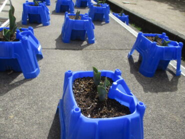 1年生の鉢植えから、チューリップが顔を出しています。だんだんと春の気配を感じます。